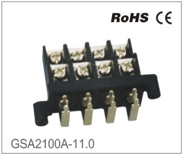 | GSA1100A-11.0 | | Стандарт | UL | IEC | | Номинальное напряжение | 300V | 250V | | Номинальный ток | 30A | 41A | | Сечение | 18-10AWG | 6.0mm2 | | Выдерживаемое напряжение | AC2000V/Min | | Шаг | 11.0mm(.433″) | | Количество контактов | 2P-12P |
