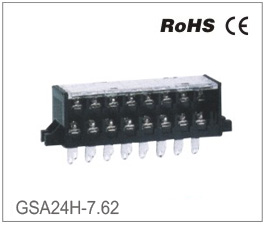 | GSA24H-7.62 | | Стандарт | UL | IEC | | Номинальное напряжение | 300V | 450V | | Номинальный ток | 15A | 24A | | Сечение | 22-14AWG | 2.5mm2 | | Выдерживаемое напряжение | AC2000V/Min | | Шаг | 7.62mm(.300″) | | Количество контактов | 2*(2P-24P) |