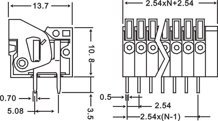| Шаг | 2.54mm(.100″) | |