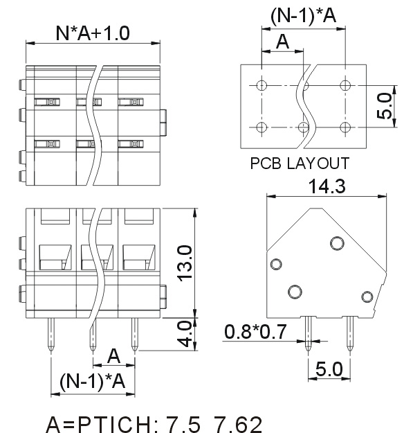 | Шаг | 7.5mm(.295″) 7.62(.300″) | |