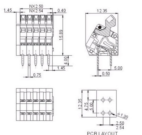 | Шаг | 2.5mm(.098″) | |