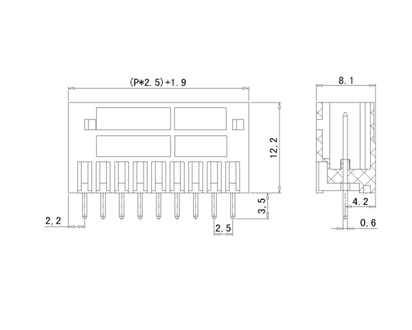 | Шаг | 2.5mm(.098″) | |