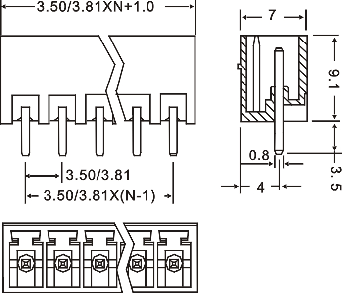 | Шаг | 3.5mm(.138″) 3.81mm(.150″) | |