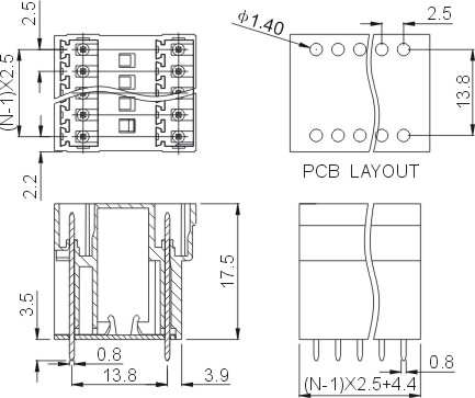 | Шаг | 2.5mm(.098″) | |