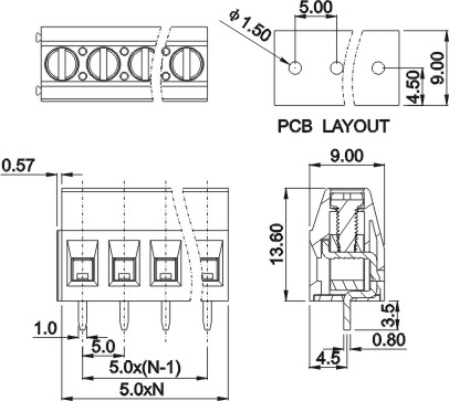 | Шаг | 5.0mm(.197″) 5.08mm(.200″) | |