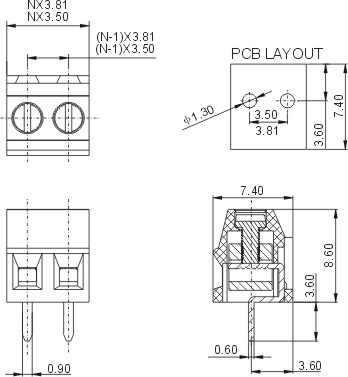 | Шаг | 3.81mm(.150″) | |