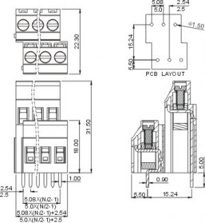 Шаг 5.0mm(.197″) 5.08mm(.200″)