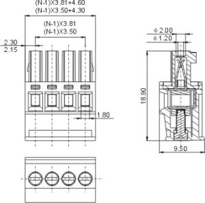 Шаг 3.5mm(.138″) 3.81mm(.150″)